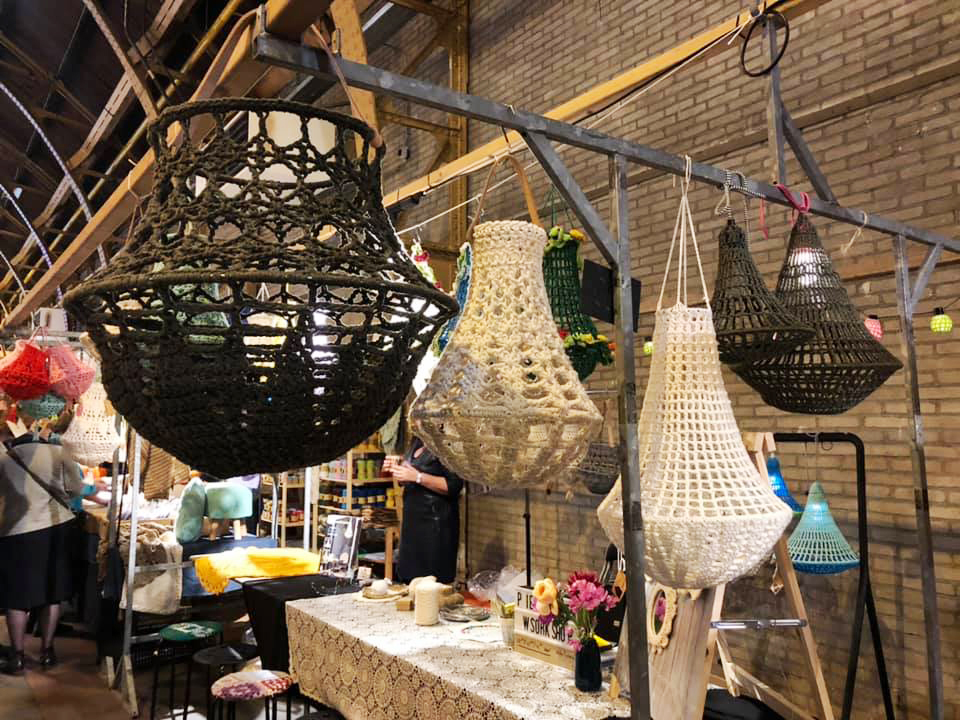 インテリアにもなる、シャンデリアのような編み物や、マクラメのタペストリーやハンギングなど、モダンな編み物。