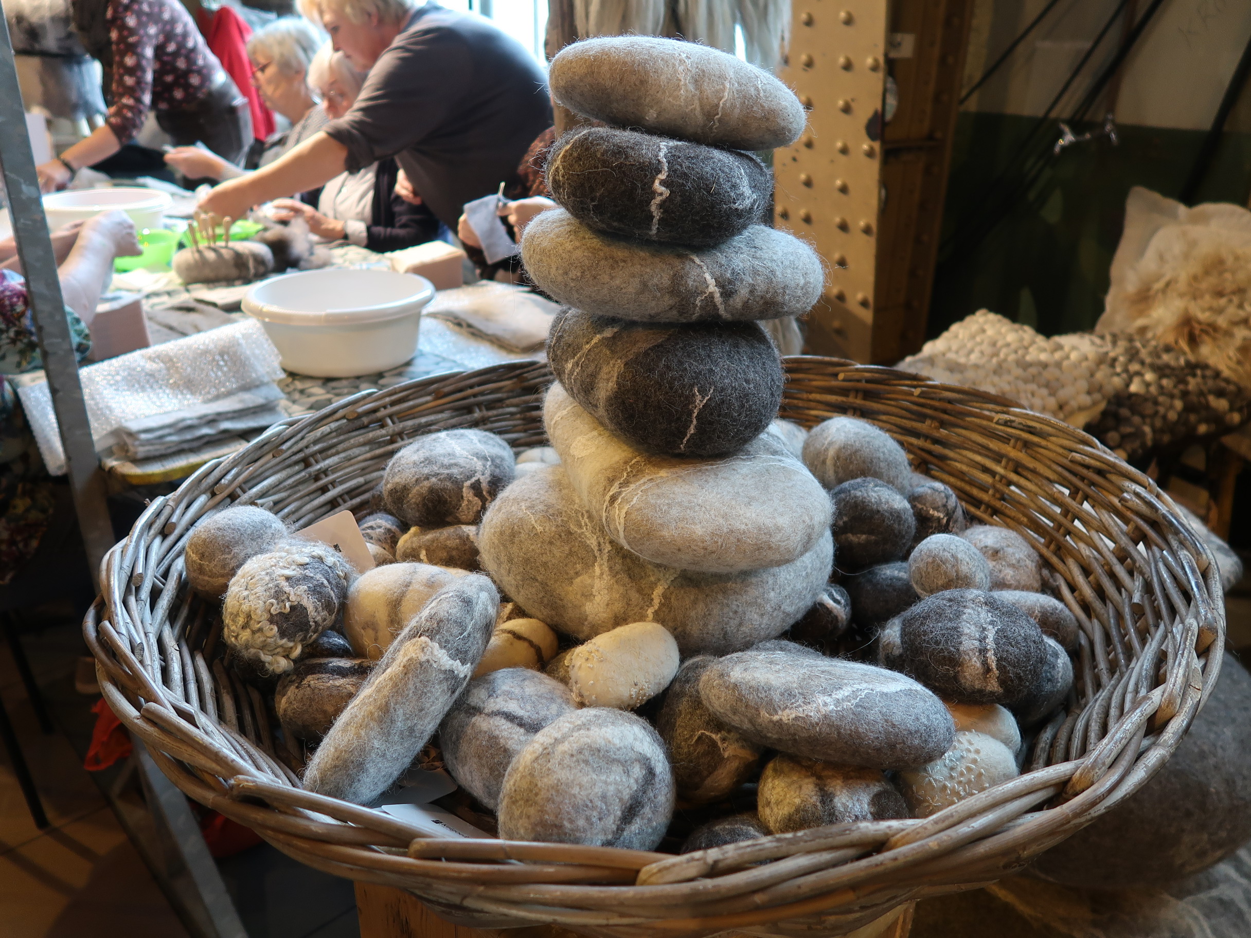 編み物以外にも刺繍や、石のような羊毛フェルトを作るワークショップも開催されていました。人気のワークショップでとても賑わっていました。