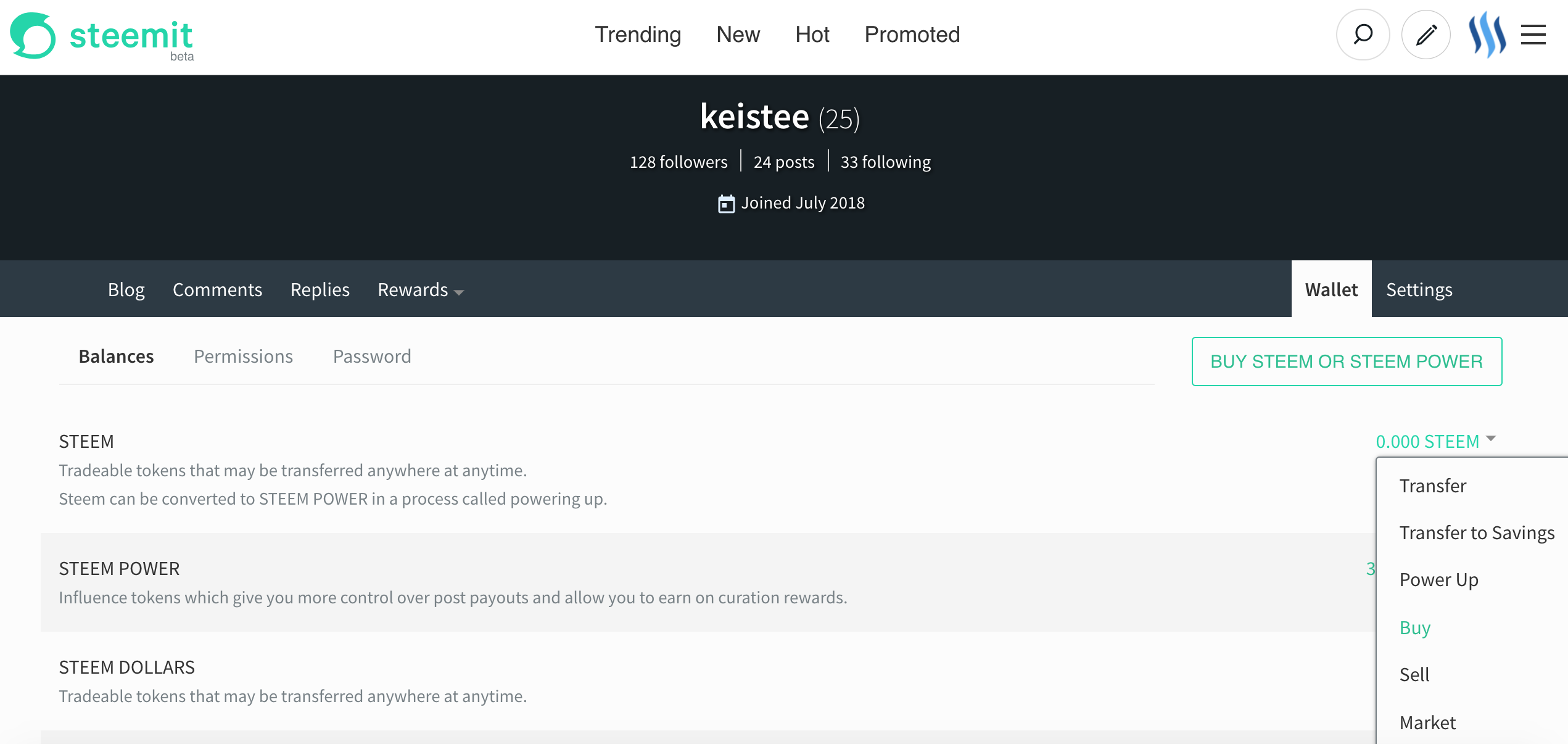 もしSTEEMが少しでもある場合は、そこをクリックしてPower Upを選択すれば、簡単にPower Upが可能です!