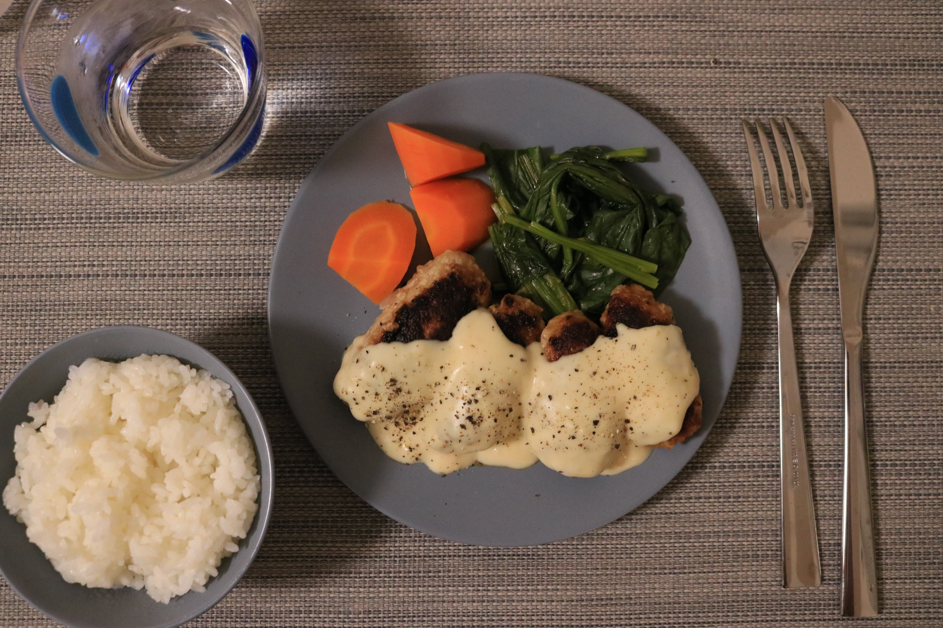 一緒に食べる蒸し野菜は人参とほうれん草です。最近人参の美味しさに気づいてしまいました!塩をかけて食べると野菜の甘さがより感じられるのでおすすめです。