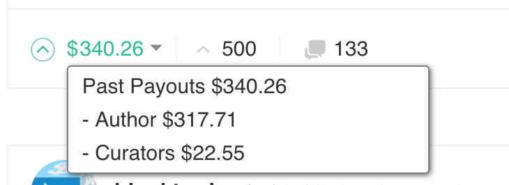 Post Payouts $340.26 に対して Curators $22.55 となり、キュレーション報酬の割合は約6.6%となっています。
