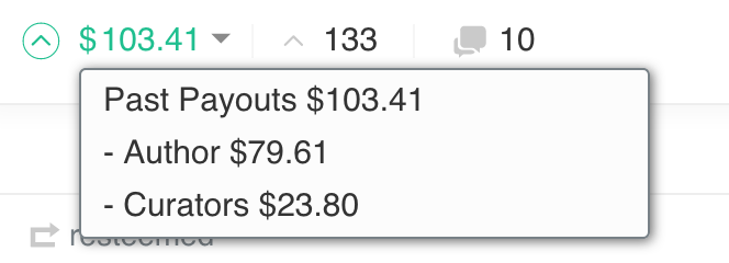Post Payouts $103.41 に対して Curators $23.80 となり、キュレーション報酬の割合は約23%となっています。
