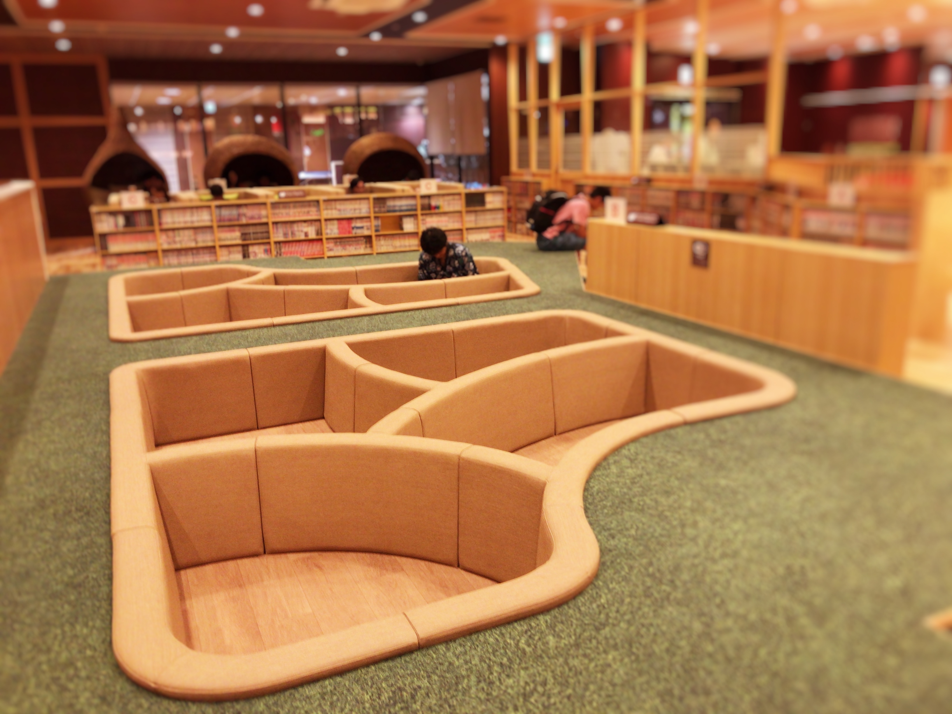 くつろぎスペースは広々としており、まるで外国の図書館のような本棚には本や漫画が並べられていました📚