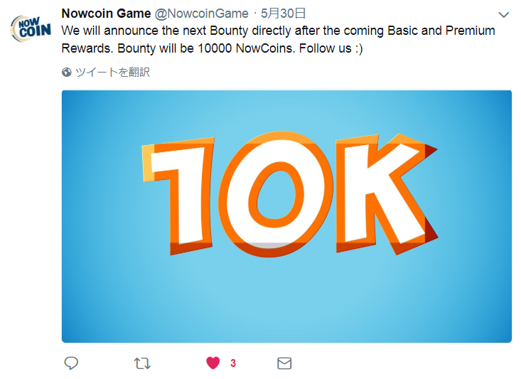 今度の賞金は10,000NOWCOIN とかなり高額です。