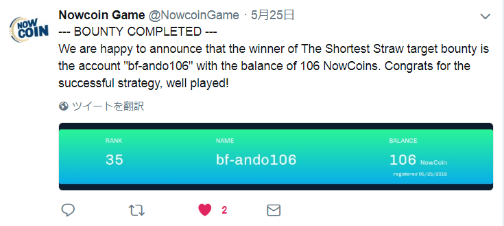 ※ 「Shortest Straw」の概要 https://medium.com/@nowcoingame/bounty-the-shortest-straw-ac8f0b5e7a79