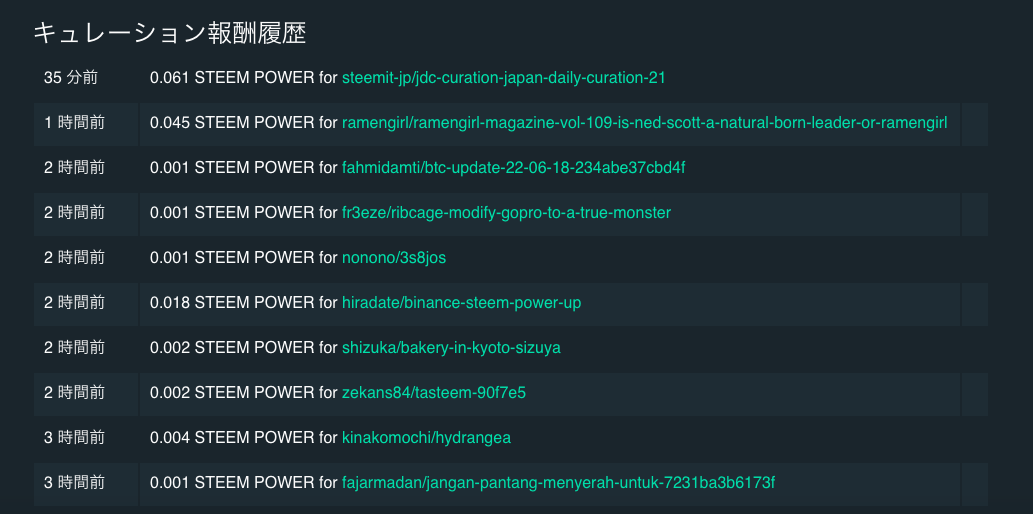 ちなみに、私の現在のキュレーション報酬は1日に0.5SP〜1.5SP程です。