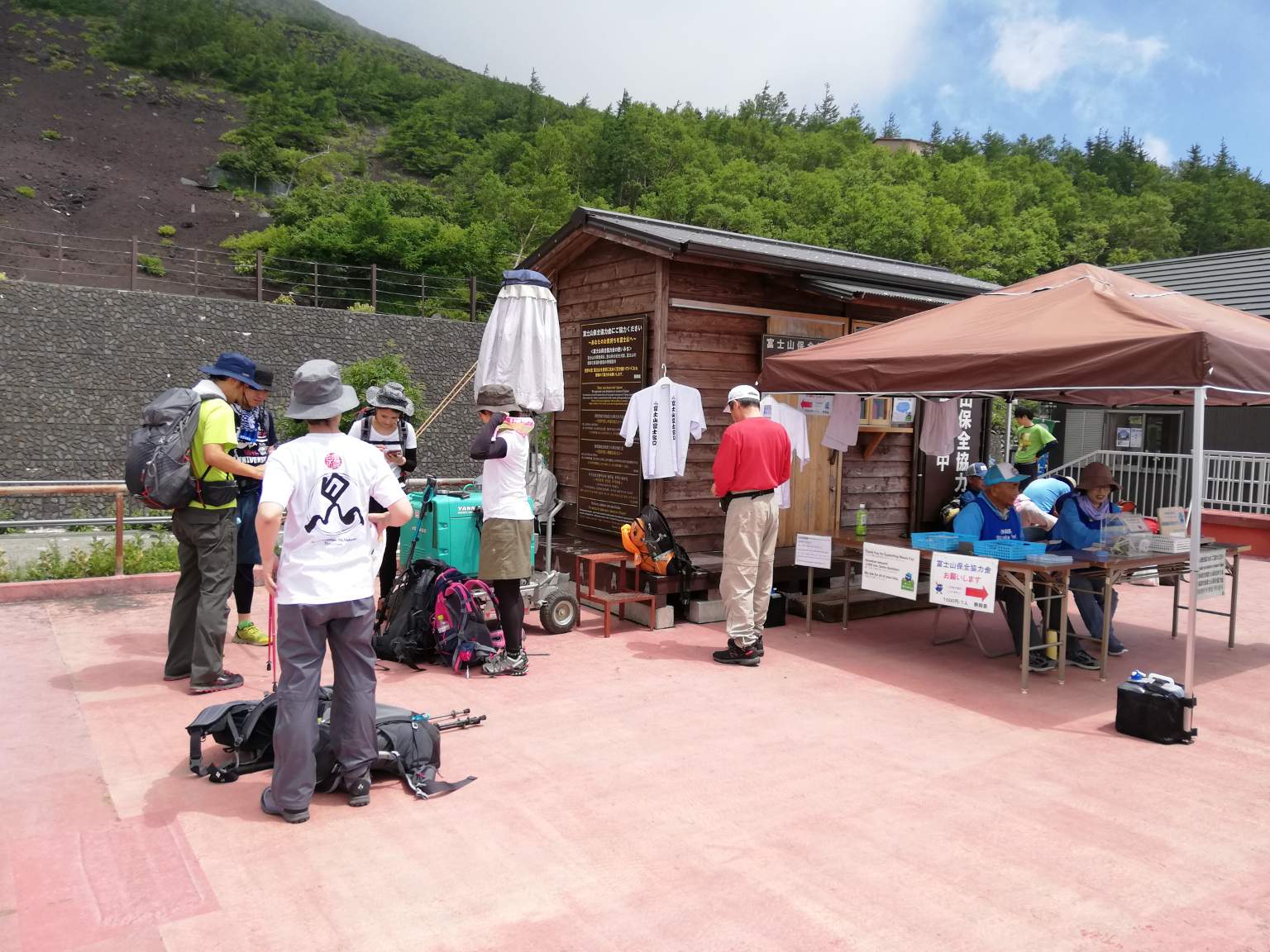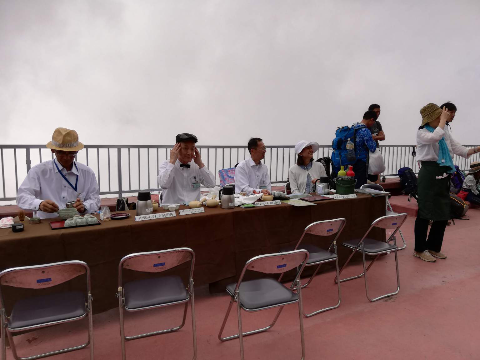 五合目まで、テーブルやイス、水タンクや茶器一式まで運び上げて呈茶をしようなんて、冷静に考えるとなんとも物好きな集団ですが