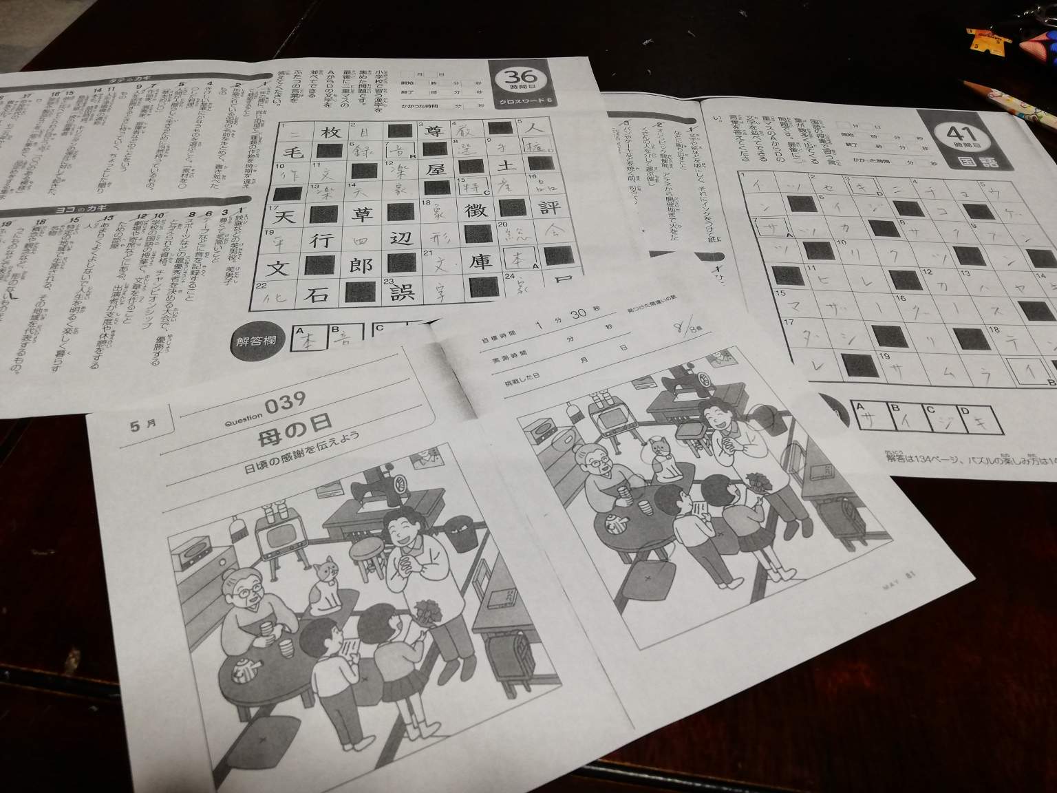 四文字熟語あり、間違い探しあり、クロスワードパズルあり🐜🐜