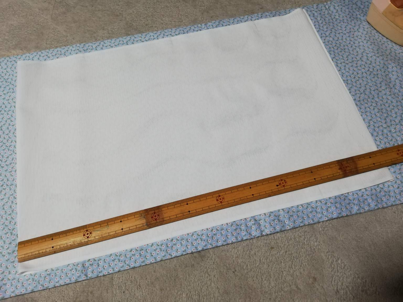 ただただ真っ直ぐに縫っていくだけなので簡単なはずなのですが、布がアイロンで押さえてもピシッとおさまらないので縫いにくい😖