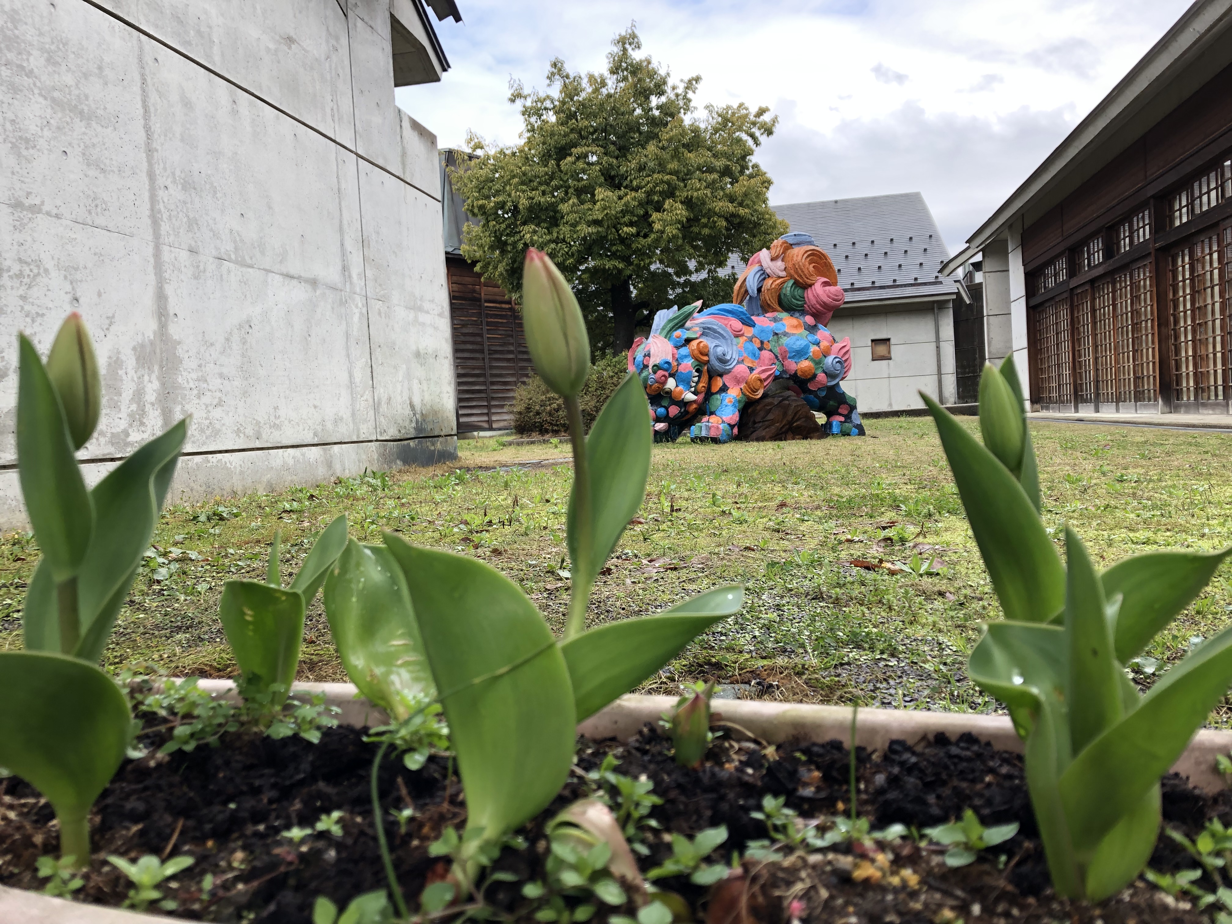 すいません、チューリップの蕾より、奥に見えるカラフルな何者かが気になって仕方ありませんw