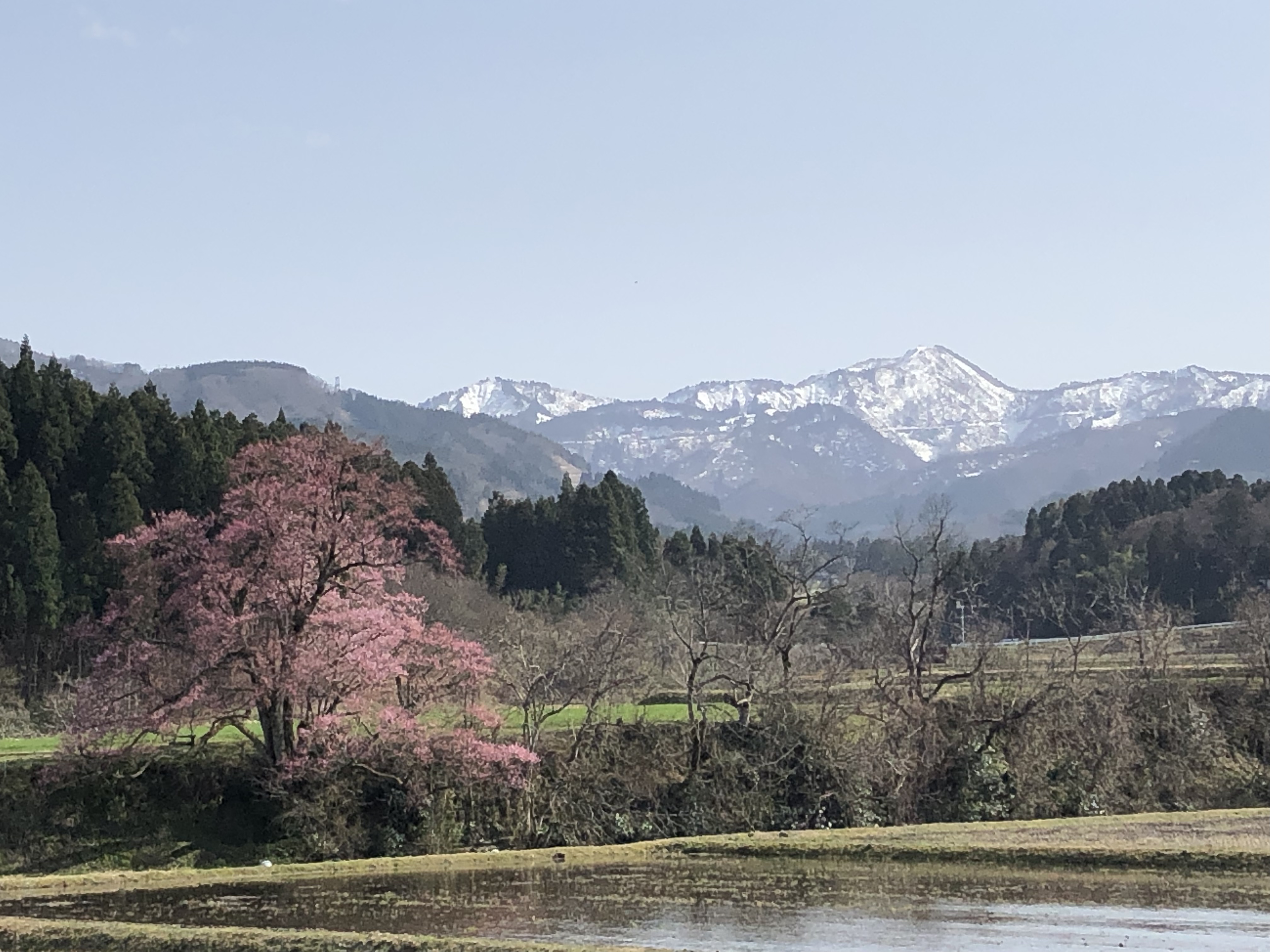 手前の田んぼに水が張ってなくて