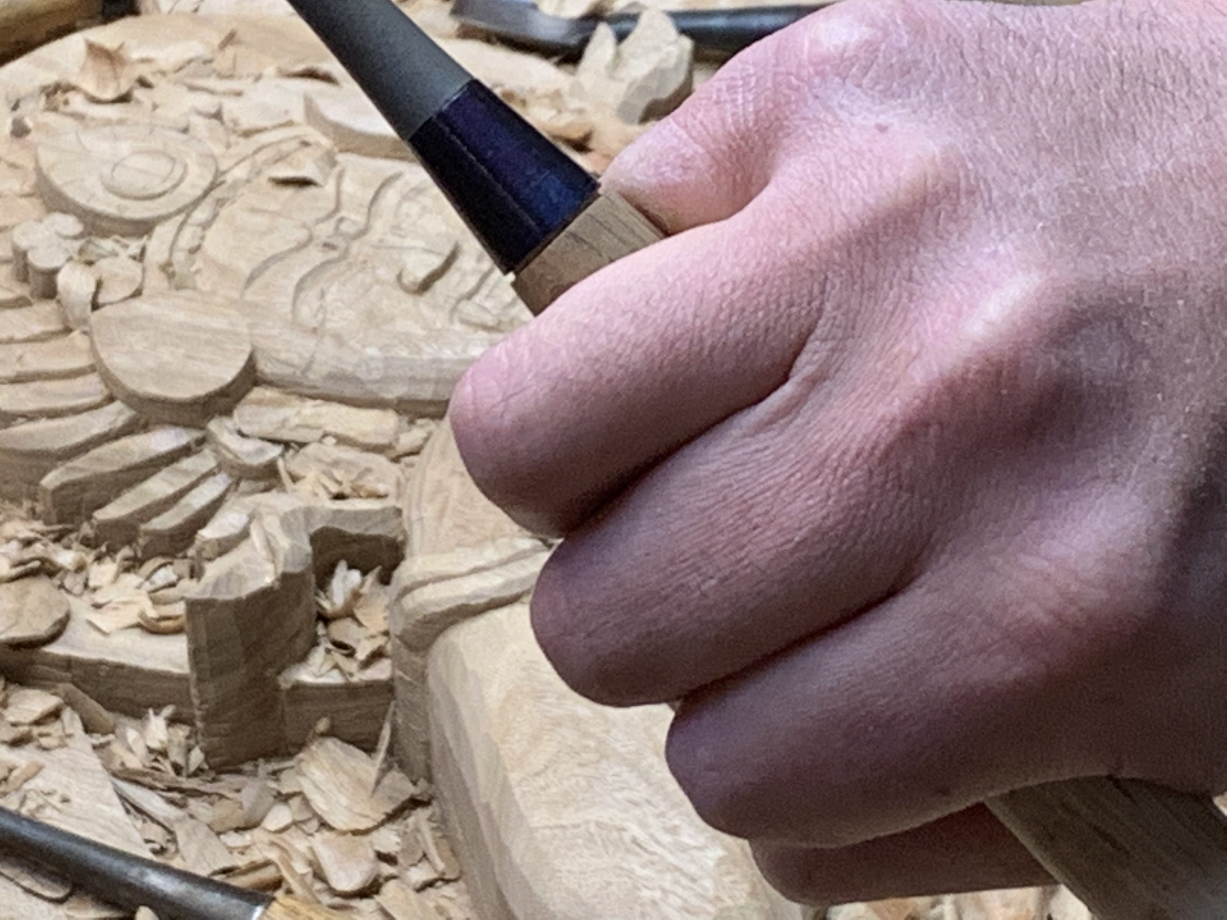 伝統的工芸品の井波彫刻を制作している