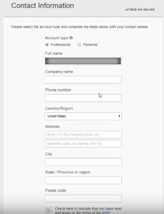 Let’s start with creating a new AWS Account. Follow the link below, and there should be a ‘Create a new account’ link at the top.