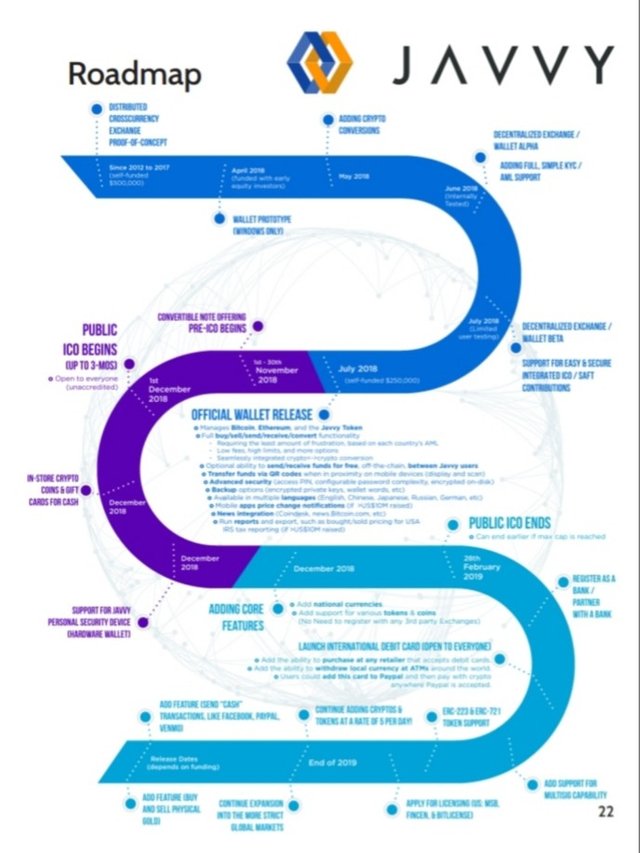 Javvy is that the full integration of a universal notecase Connected to varied exchanges presently out there to the cryptocurrency market. It eliminates the requirement for multiple accounts and applications whereas taking advantage of their individual advantages. in conjunction with our straightforward and quick method for user registration and verification, Javvy brings confidence and clarity to the user as cryptocurrencies approach mass adoption. we offer all the tools necessary to firmly store, use, and invest in cryptocurrency. This document details the total vision of the Javvy resolution. Our ICO can finance the continuing development of options to bring the Javvy notecase from version one.0, presently out there on-line, into the total vision printedduring this Whitepaper.