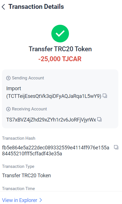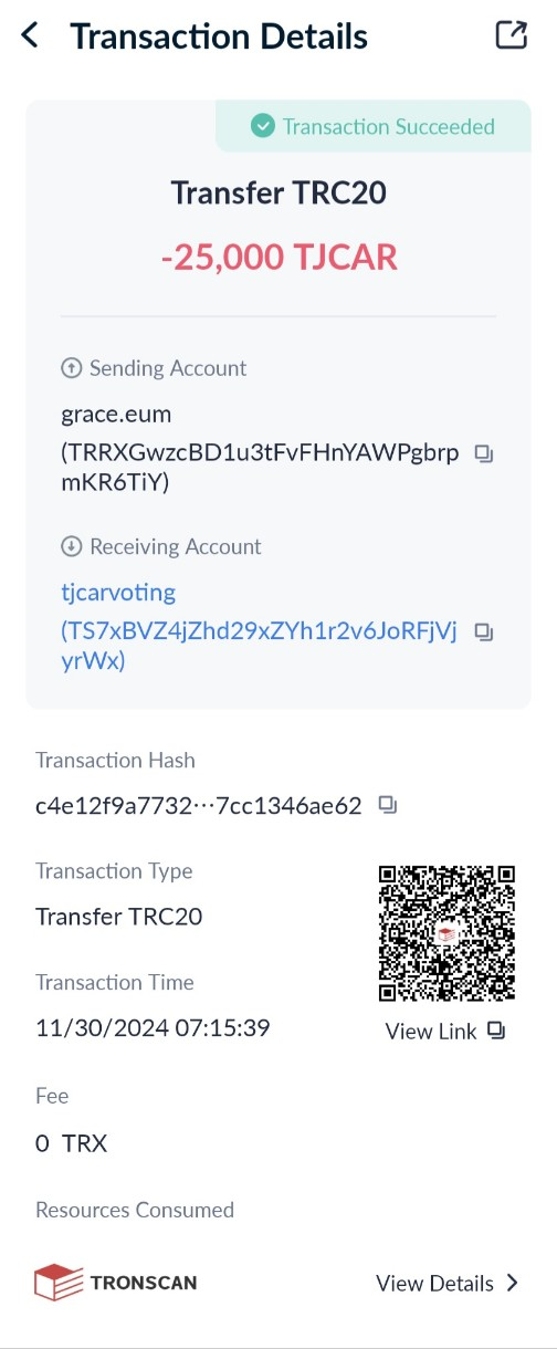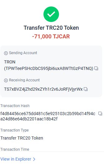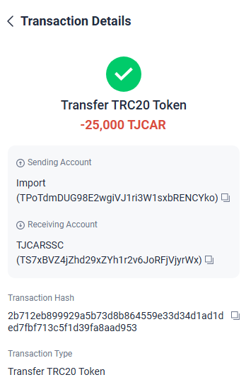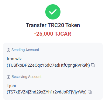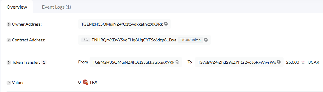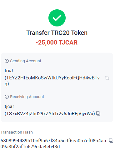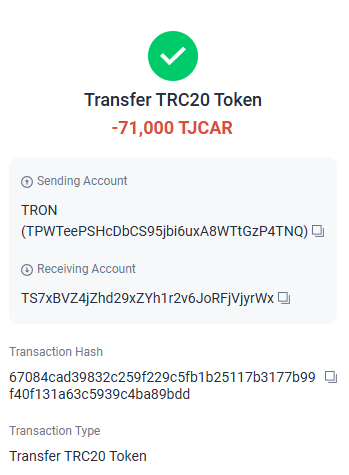 TJCAR 컨트랙트 주소 : TNHRQryXDyYSyqFHq8UqCYFSc6dzp81Dxa