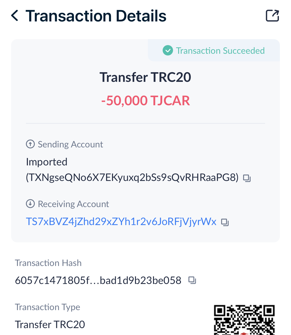 TJCAR/TRX POOL 페어 주소 : TWRhY8zuHWr1sM8jb99K8G9iAZEn4Y5Q79
