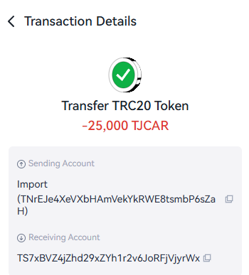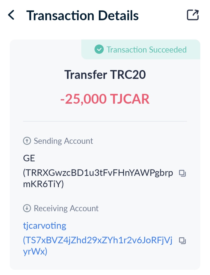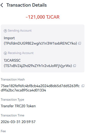 • TJCAR 컨트랙트 주소 : TNHRQryXDyYSyqFHq8UqCYFSc6dzp81Dxa