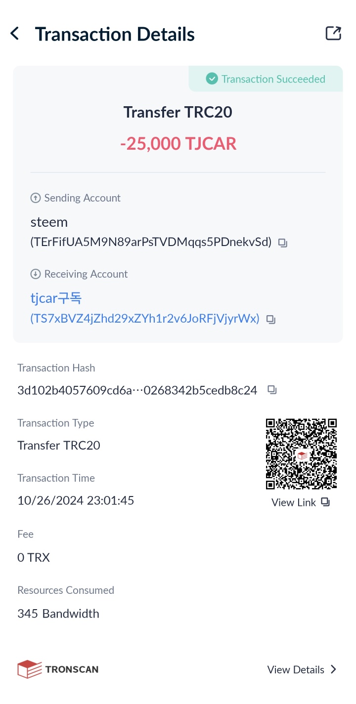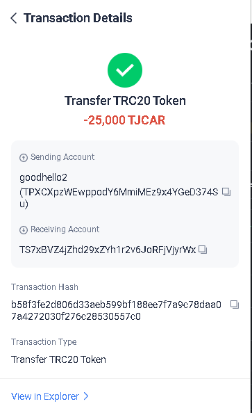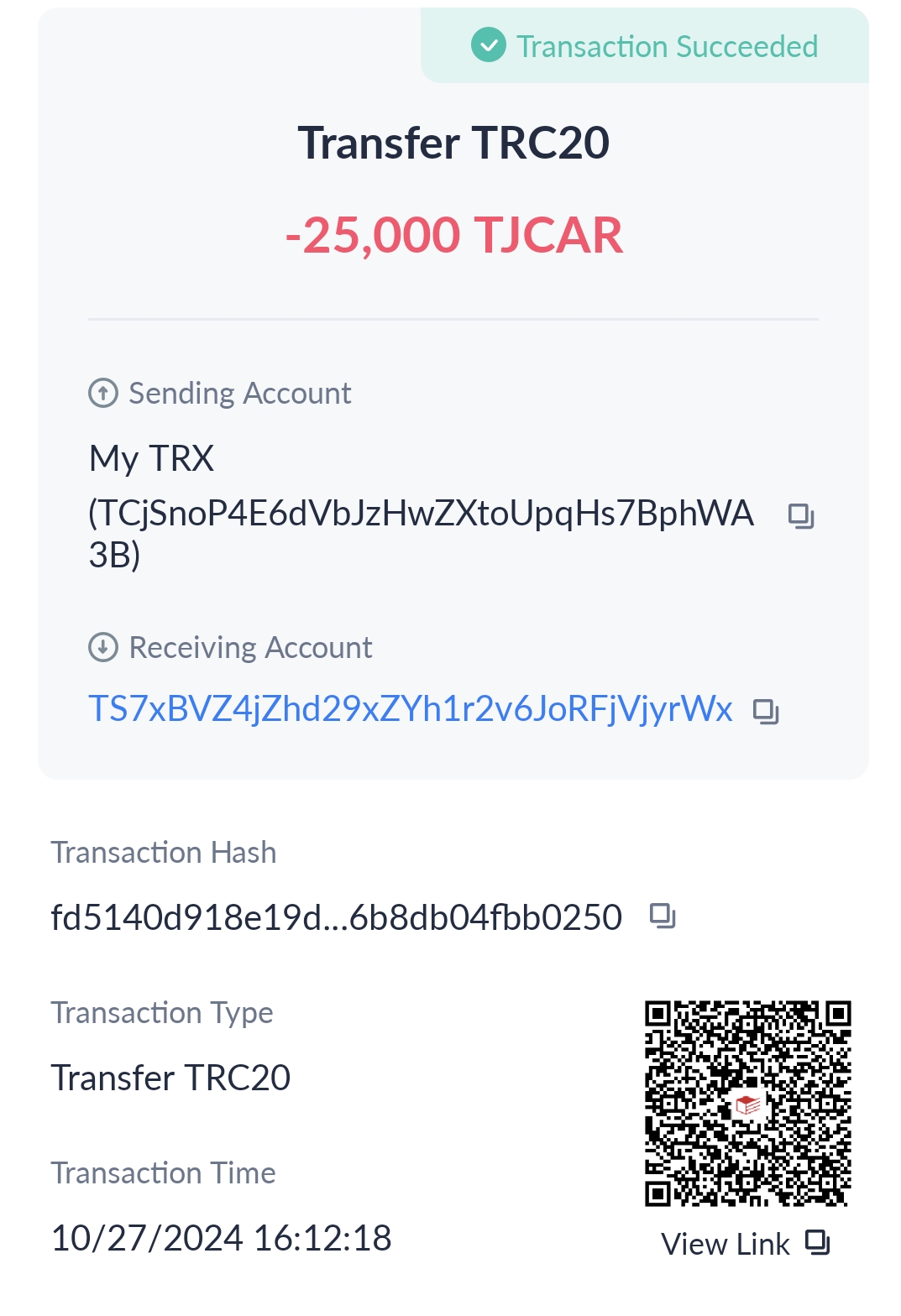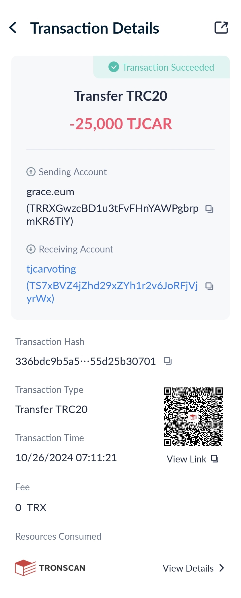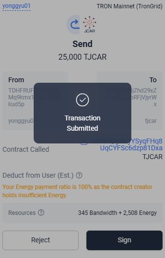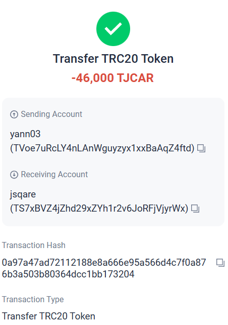 TJCAR 컨트랙트 주소 : TNHRQryXDyYSyqFHq8UqCYFSc6dzp81Dxa