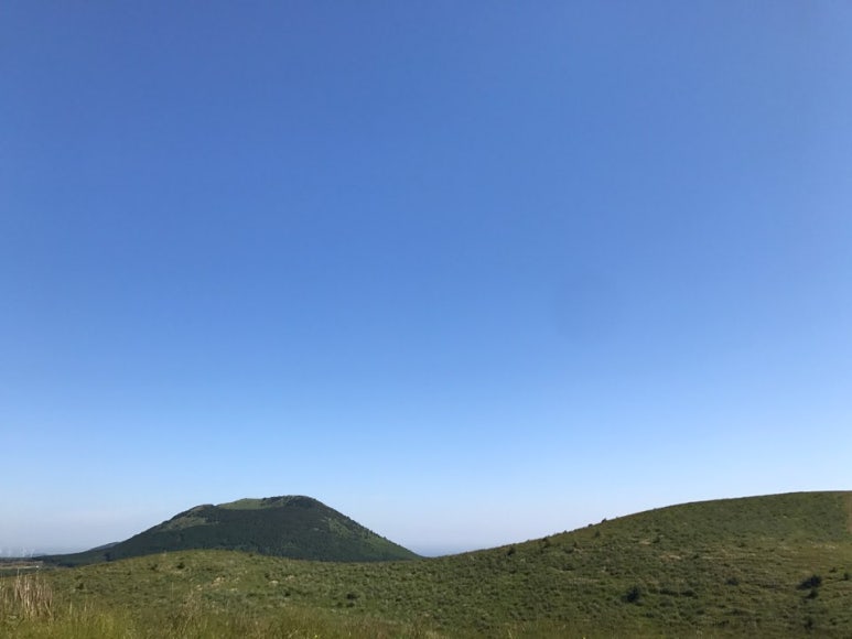 용눈이오름에서 보이는 다랑쉬 오름인데요. 다랑쉬 오름은 용눈이 오름과 느낌이 많이 달라서 꼭 올라보세요.^^