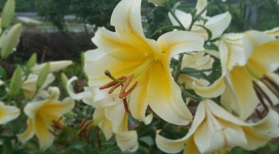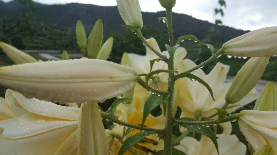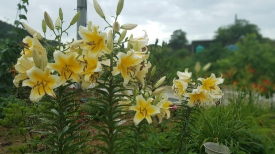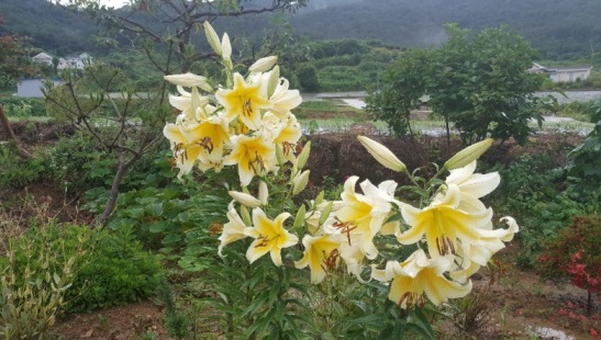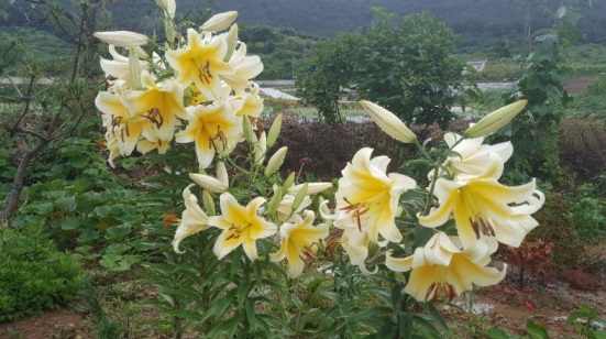 밑에 조금씩 백합꽃을 피우기 위해 노란 멍울이 지던 것들이 하나둘씩 오늘은 활짝 피여 오늘도 행