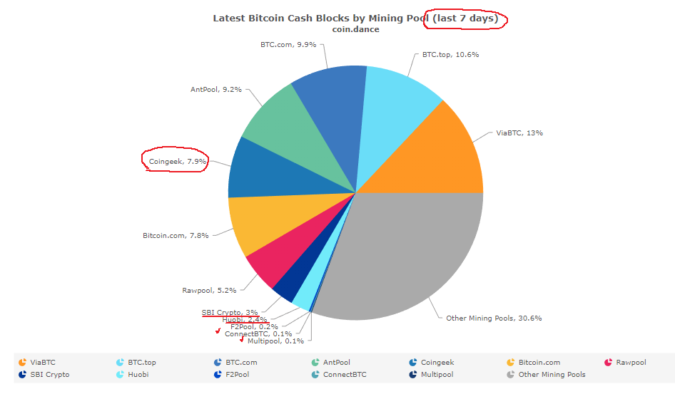 덕분에 최근 7일 평균 해시 레이트 점유율이 coingeek 이 8프로에 가까워 졌네요.
