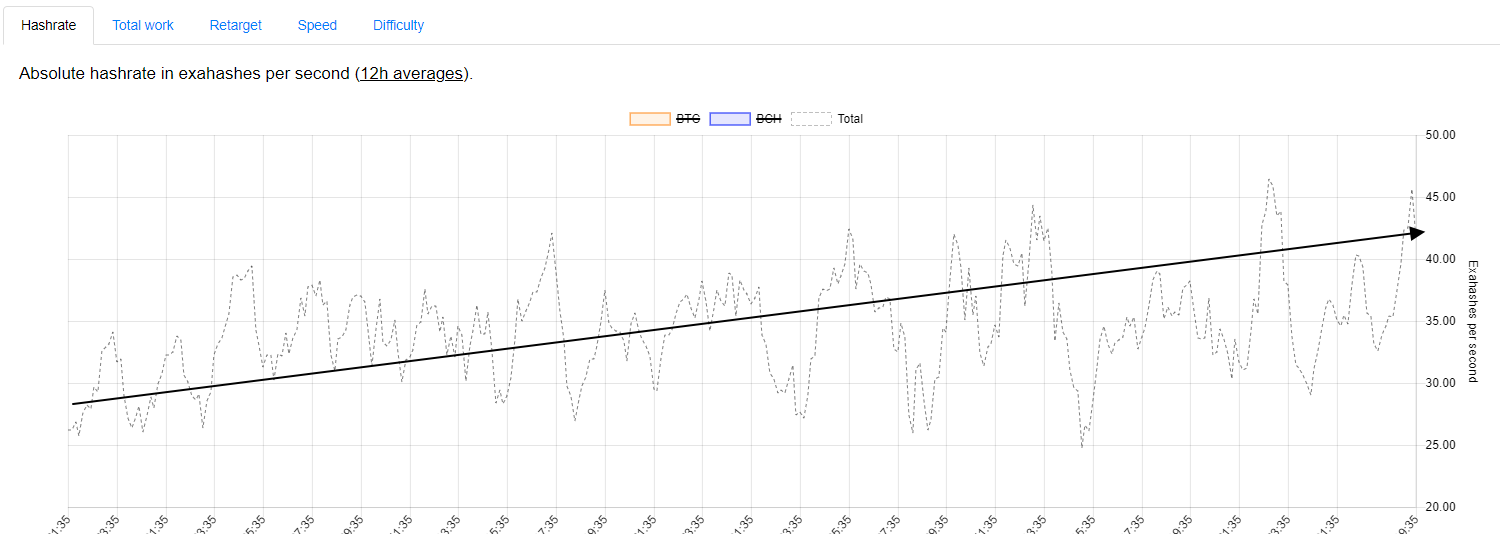 그리고 아래처럼 비코+비캐 의 채굴 해시레이트는 꾸준히 우상향을 보여주고 있습니다.