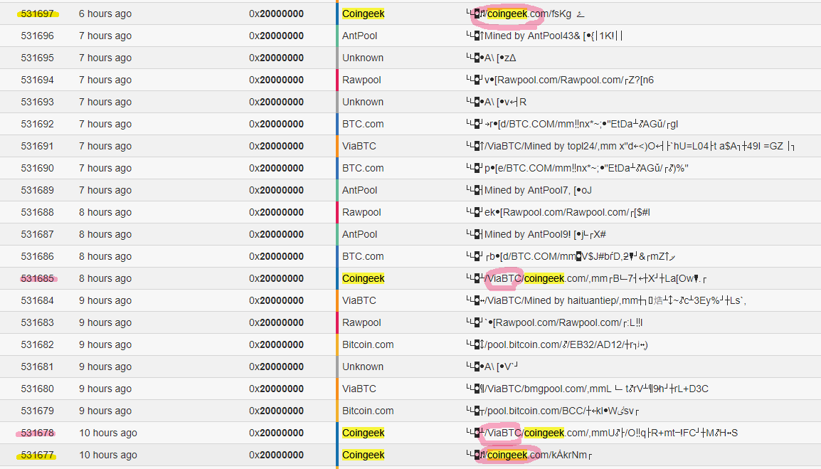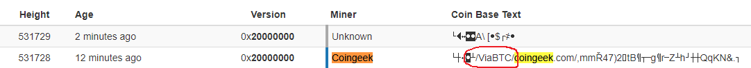 노란색 칠한 블럭 넘버를 보면 /ViaBTC/ 가 없이 coingeek.com 만 적혀 있네요.