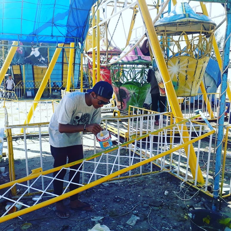 Beberapa teman saya sesang melakukan pengecetan pada sebuah wahana permainan. Kami ingin menampilkan yang terbaik kepada pengunjung yang datang. Dan salah satunya adalah dengan memperbaharui warna pada setiap wahana yang kami miliki.