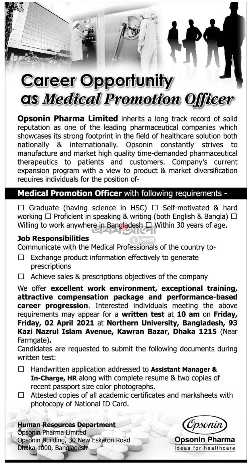 Opsonin Pharma Job Circular 2021