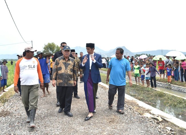 Buku Kerja Tunai Liyane sing ditandhani Jokowi minangka pembangunan irigasi 590 meter sing dumunung ing sawah kanthi jembar 85 hektar kanthi nilai Rp 225 yuta. Wektu iki ngilekake banyu mung 60 dina.