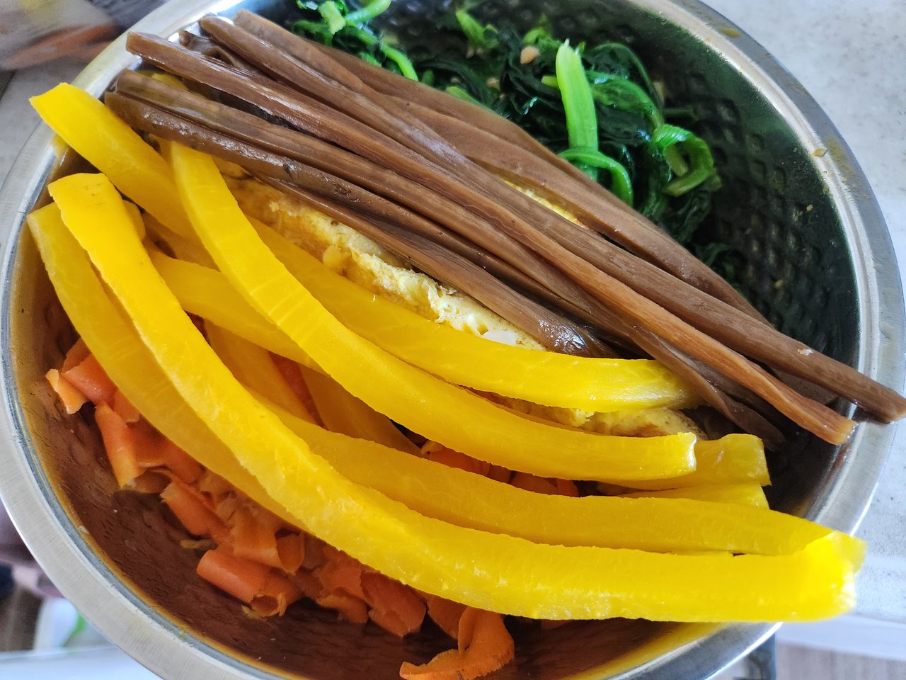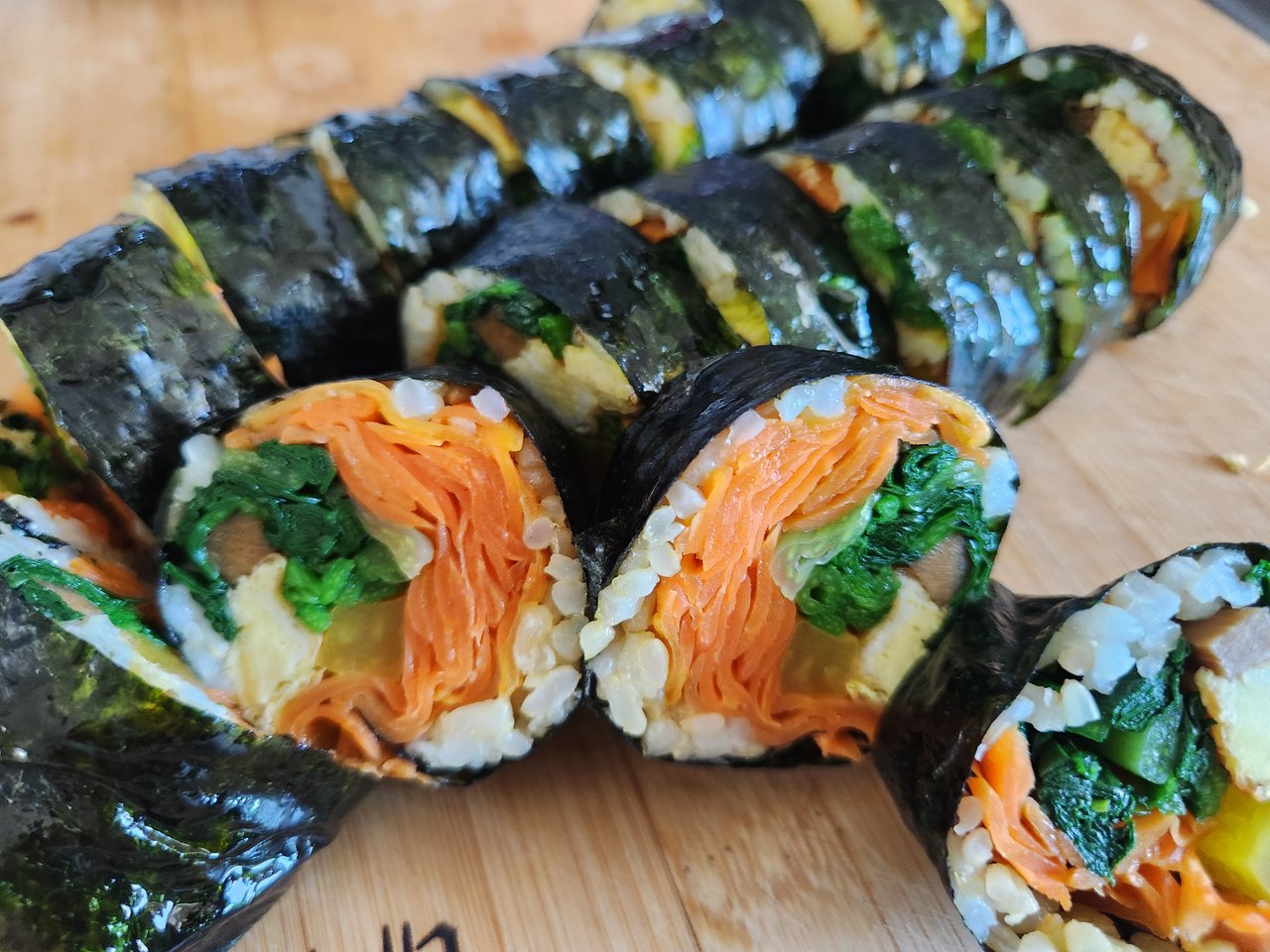 I had a lot of carrots and spinach in the fridge, so I decided to make gimbap. Gimbap with a lot of carrots turned out surprisingly delicious.
