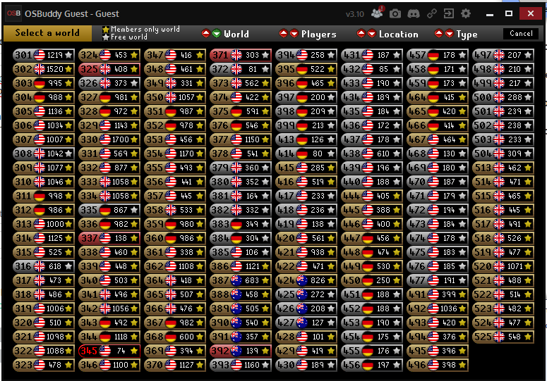 denle clic ah algunos de los servidores de color (gris) ya que los dorados son para los members. y despues inicien sección.
