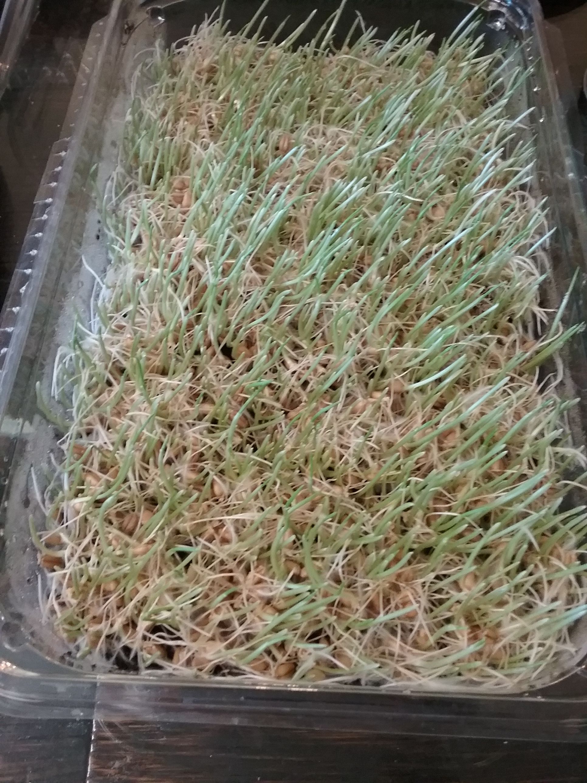 *I started with a 5 lb bag and the suggestion was to use 1 lb per flat however that was producing too many sprouts for the flat so I adjusted to 3/4 cup per mason jar (2) making it a total of 1 1/2 cups of seeds per flat.- Fill each mason jar with 3/4 cup seeds and rinse off with warm water swirling the jar as it fills. Dump water from jar and repeat one more time.