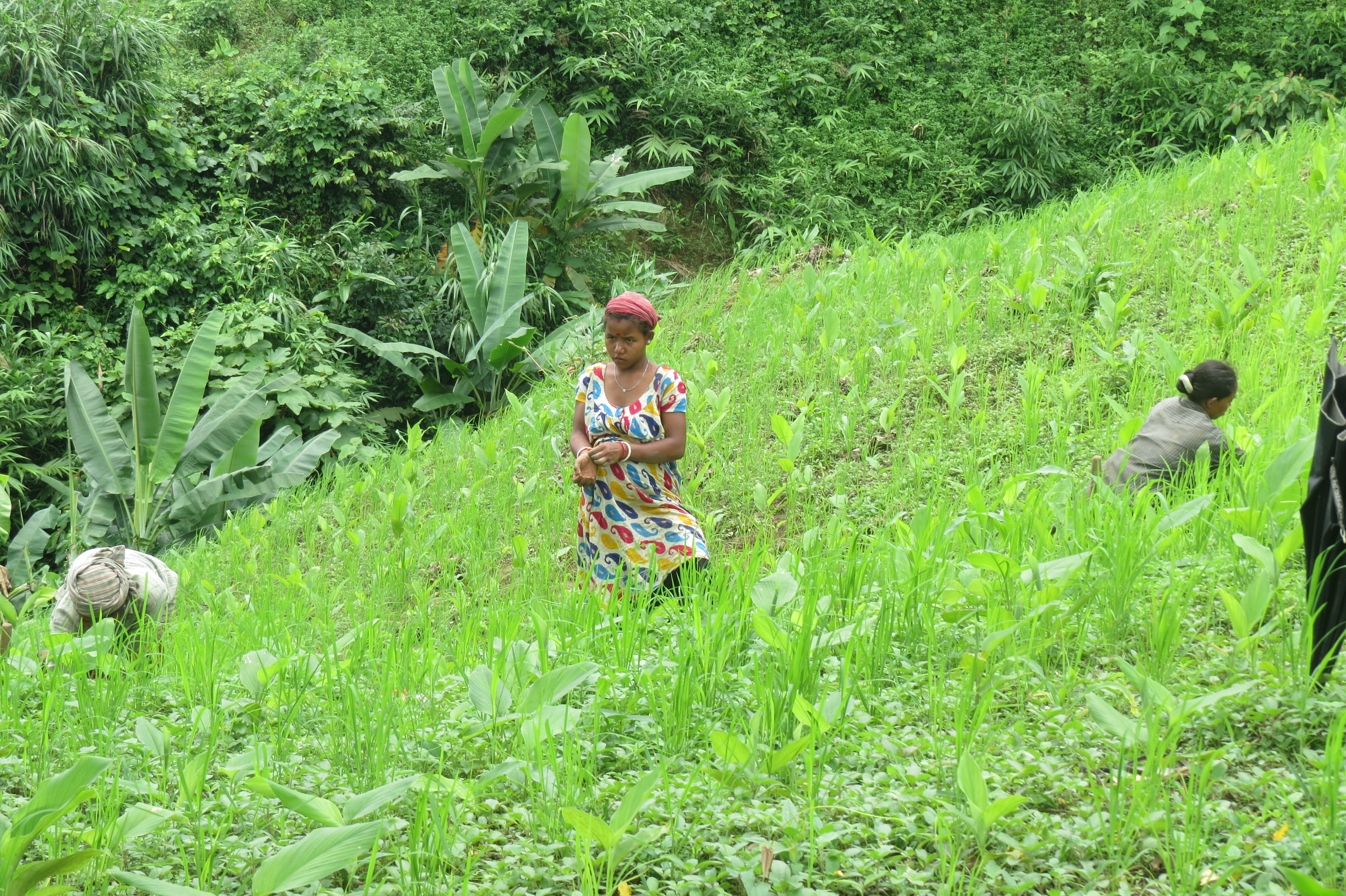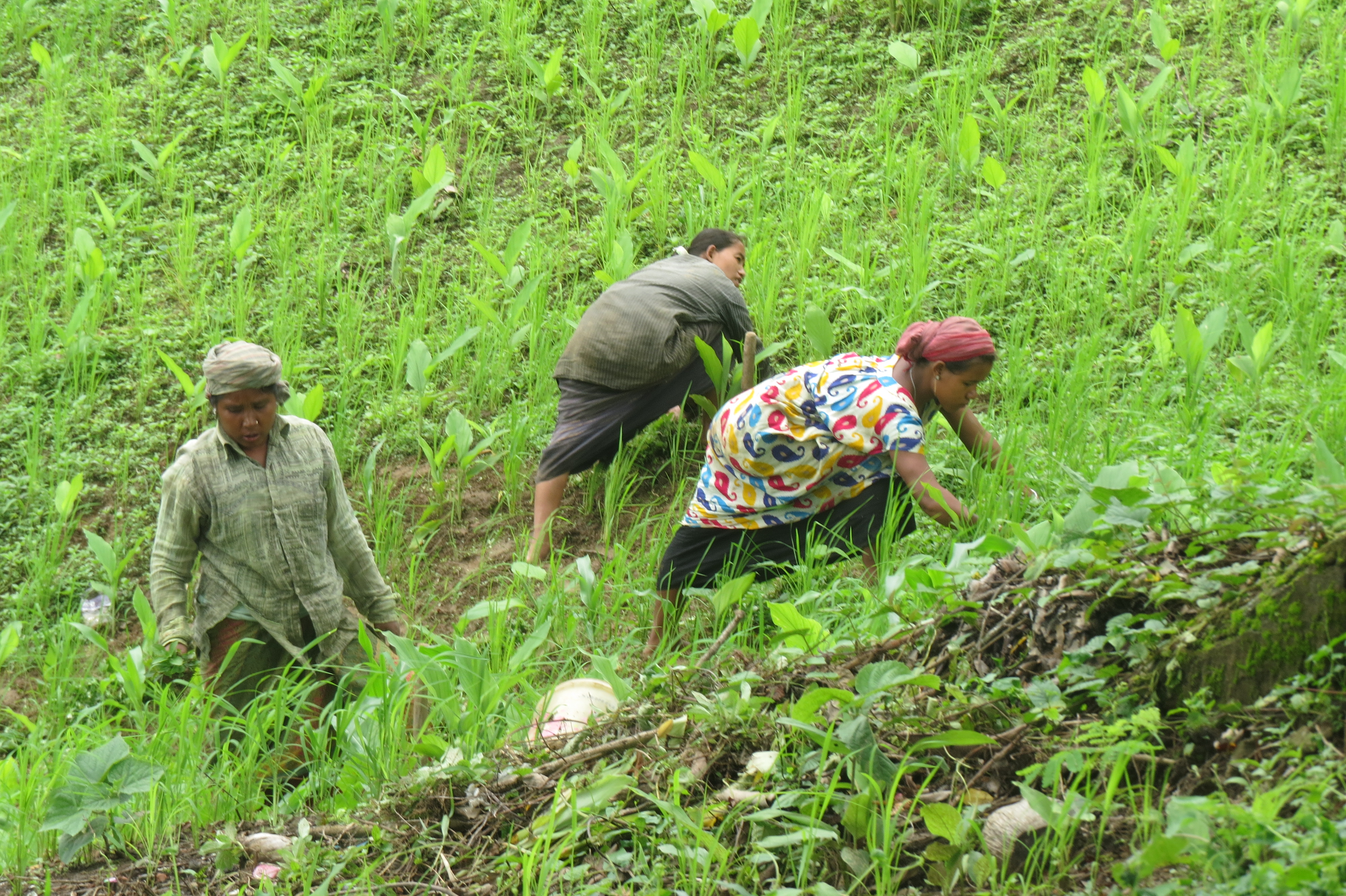 ছবিতে খাগড়া ছড়ি জেলার আলুটিলায় কর্মরত জুমচাষী দের দেখা যাচ্ছে।