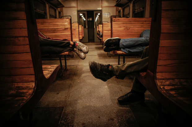 一群 ultras 在克里米亚的辛菲罗波尔市约架并胜出后,正在返程的火车上昏睡休息。