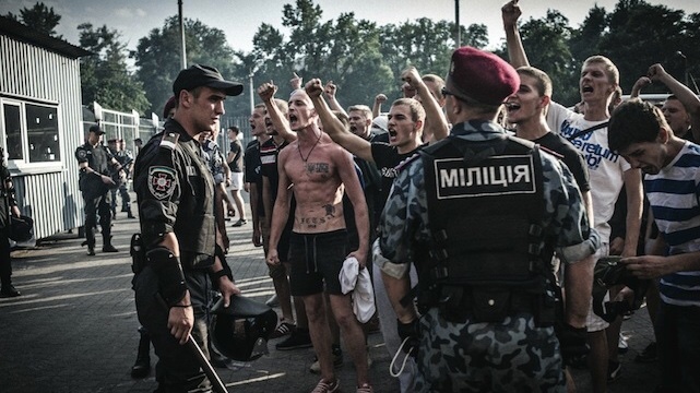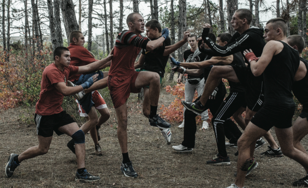 在俄罗斯吞并克里米亚后,没人知道下一步会发生什么,不同组织之间的仇恨也在不断扩大和加深。竞争十分激烈,很多成员甚至还不到17岁就被人从球场或武术学校里招募了过来。他们很多人的家庭条件都不错,完全通过朋友进入了这个领域里,入门条件除了音乐和着装之外,足球是最重要的标准。