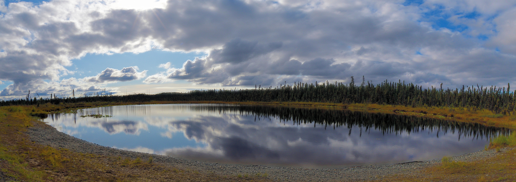 Pingo's and Pingo ponds form in permafrost areas. A Pingo is a raised frozen hill covered in dirt, and a Pingo pond is a collapsed Pingo area. that is just a very basic explanation of a Pingo. More information is available on line. In Alaska we have a lot of what people refer to as Pingo Ponds. Some of them may be something else but any almost circular little lake or pond people call them Pingo Ponds.