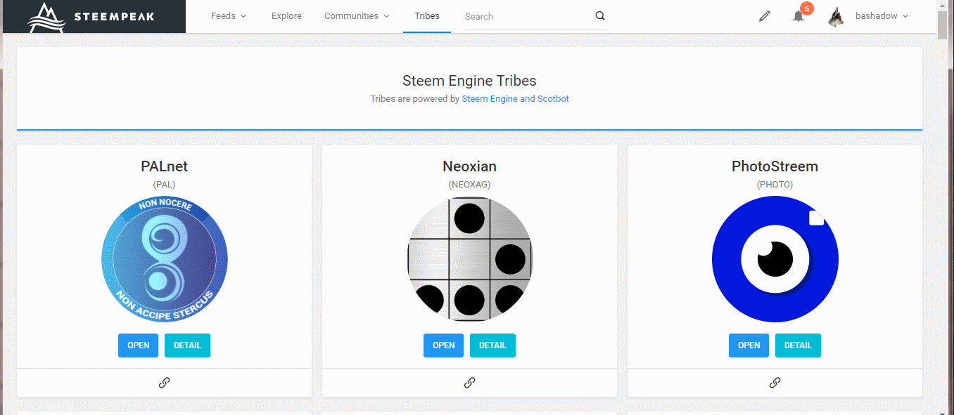 - Current listing and quick access links to Steem Engine Tribes and tokens.