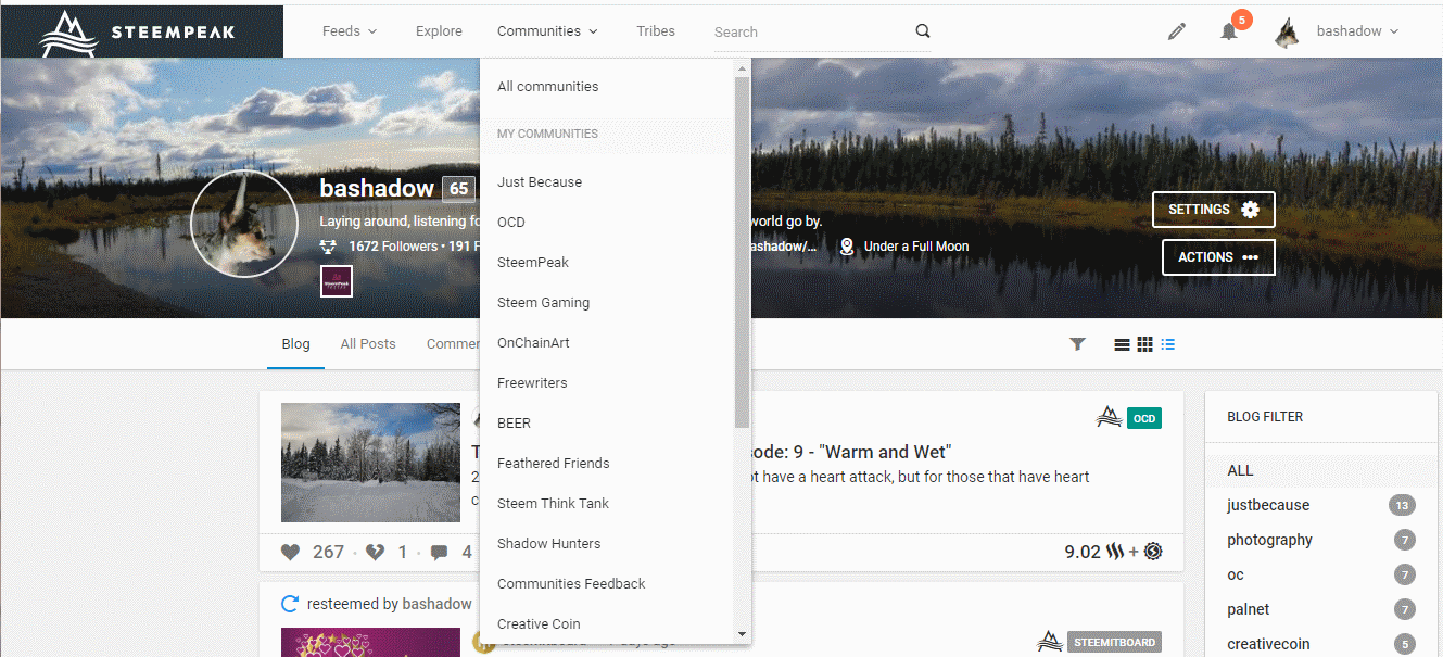 - Quick access links to all communities, and to those that you follow. Opens up their Community Home Page to allow you to view and/or create post. All the Community pages have Who they are, a description, rules and who the team members are.