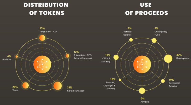 - The KARATCOIN platform is directly linked to gold mining operations, which will receive funds to help increase gold production. The greater the financing of KARATCOIN, the higher the aggregate gold production, which in turn, will increase the cost of the KARATCOIN coin.
