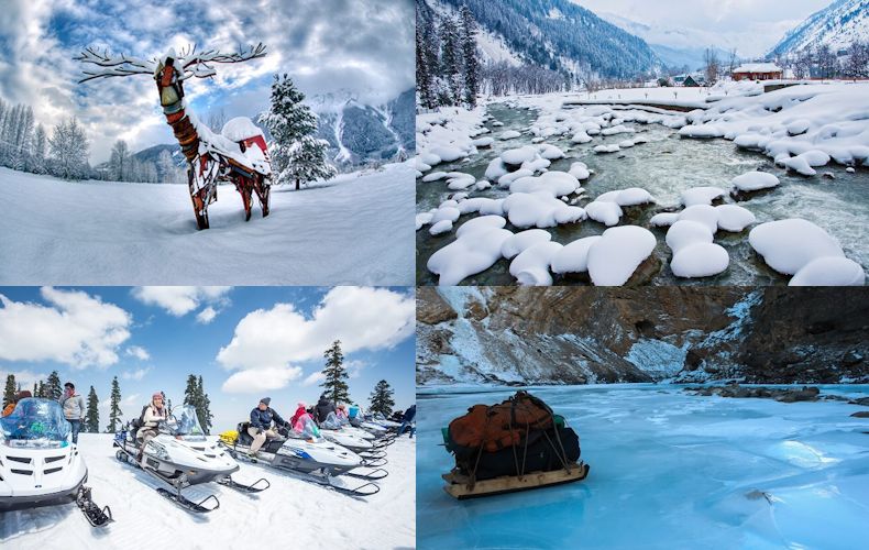 Snow Wonderland: In winter, Kashmir transforms into an entrancing winter land. The white scene and delicate snowflakes falling on the dazzling vistas is a sight to swoon over. Zanskar river turns into a thick sheet of ice in winter, forming a perfect platform for the most thrilling Chadar Trek in the world. Skiing in Gulmarg and Sonamarg at sub-zero temperature to make the winter a memorable one. The brilliant white winters of Kashmir is an affair of a lifetime.