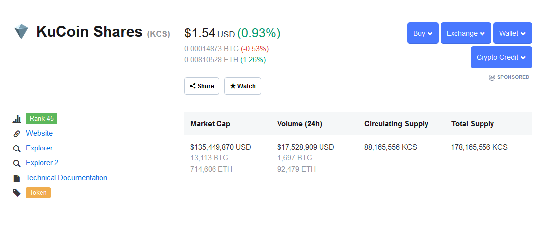 KCS Was Removed From The Top 100 On CoinMarketCap But Is Now Back At It Againdest (2)in #kcs • 7 years ago KCS on CoinMarketCap: https://coinmarketcap.com/currencies/kucoin-shares #kucoin #coinmarketcap #top100