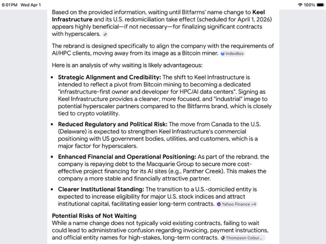 $BITF The Company $KEEL Infrastructure, Waiting To Lock In Contracts With A Hyper-Scaler, While A Transition Is Taking Effect, May Be Highly Beneficial, And Also May Be Legally Necessary! Once Everything Is Finalized On April 06, That’s When Everything Will Come