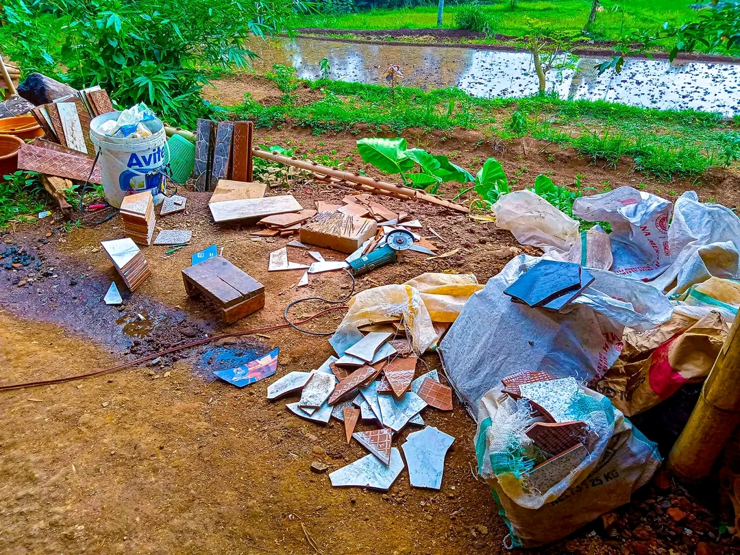Keramik bekas yang pecah banyak yang sudah tidak dipakai lagi.