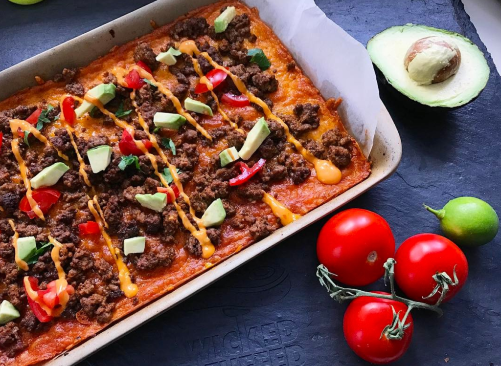 7.If not, put it back in the oven and wait to eat it. When you can, add taco meat and simmer for an additional 5 to 10 minutes, or until heated through.