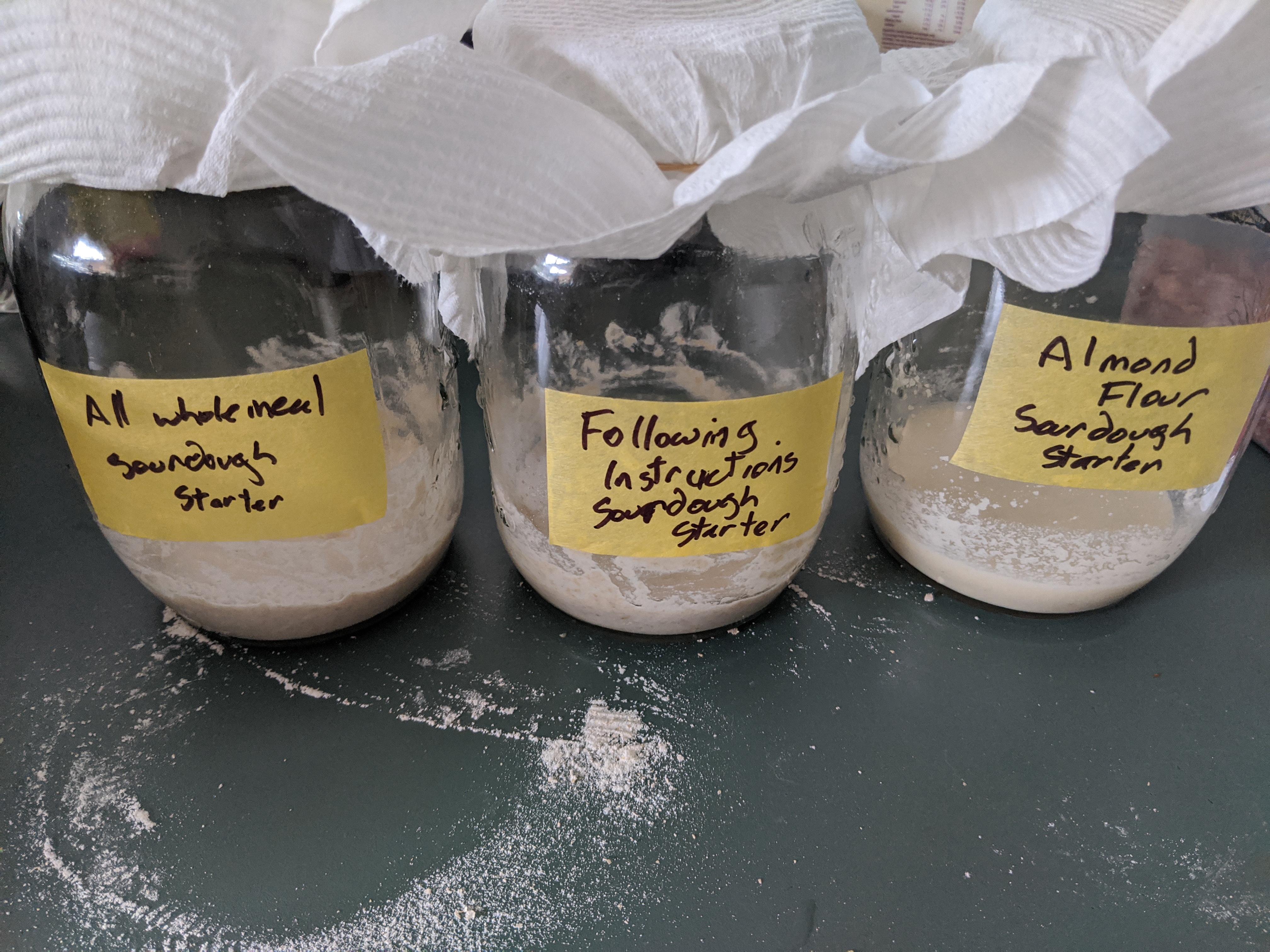 There's not a lot of video tutorials for sourdough despite how trendy it is right now. The tutorials I could find insisted on bread flour and me, being a carb-sensitive gremlin from the wrong side of the Kuiper Belt or something, thought that I could try some keto-friendlier versions.