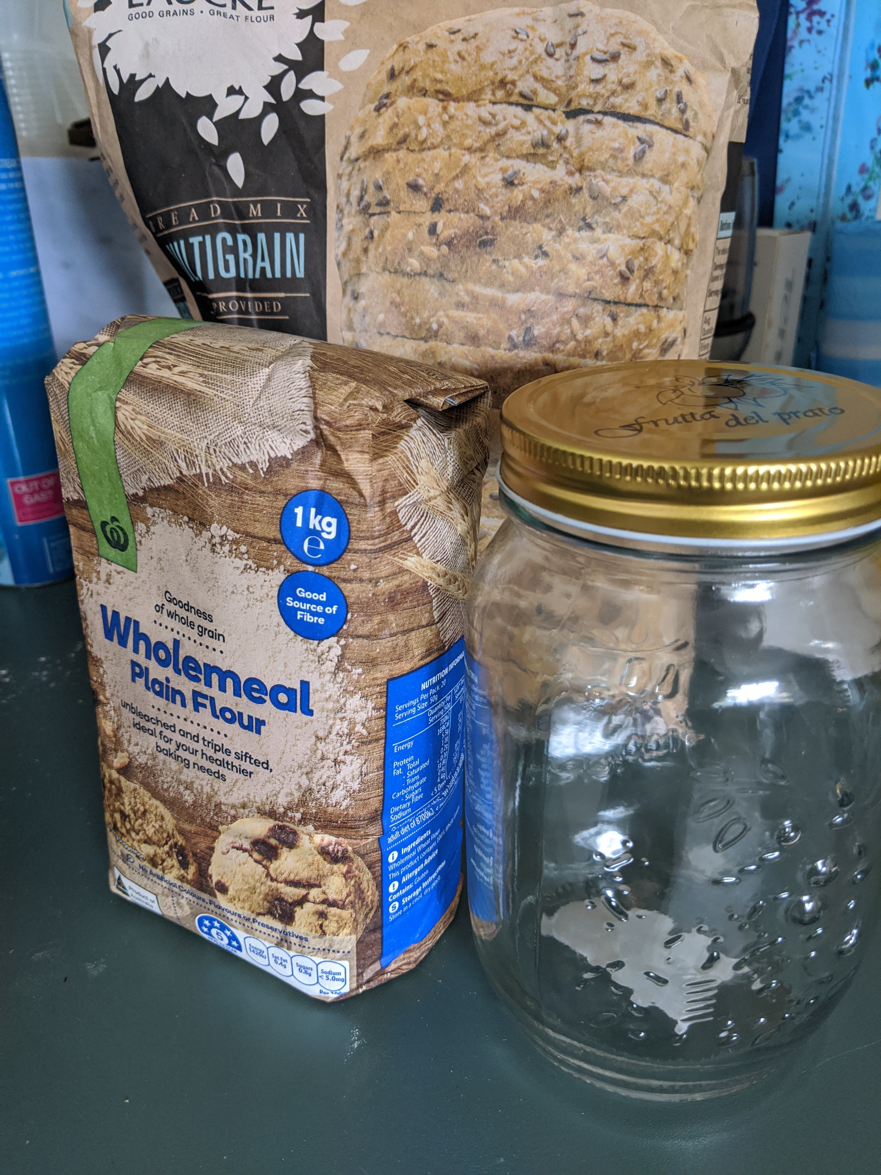 As you can see, the three batches are rather small. I used quarter-cups of filtered water as well as quarter cups of the relevant flour. Only the Day 1 starter batches of Wholemeal and Instructions starter were identical.