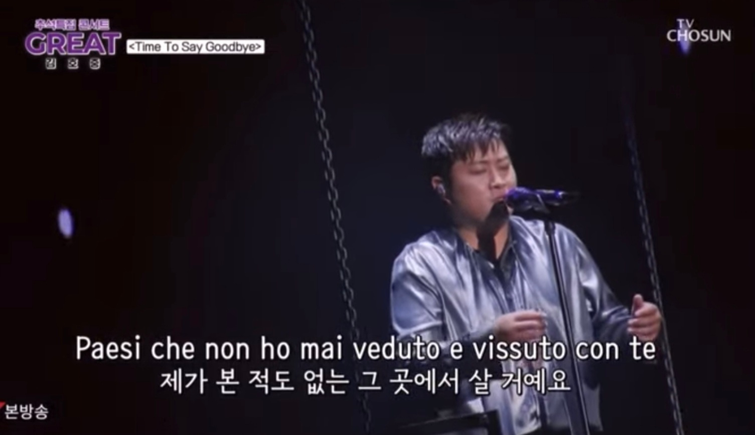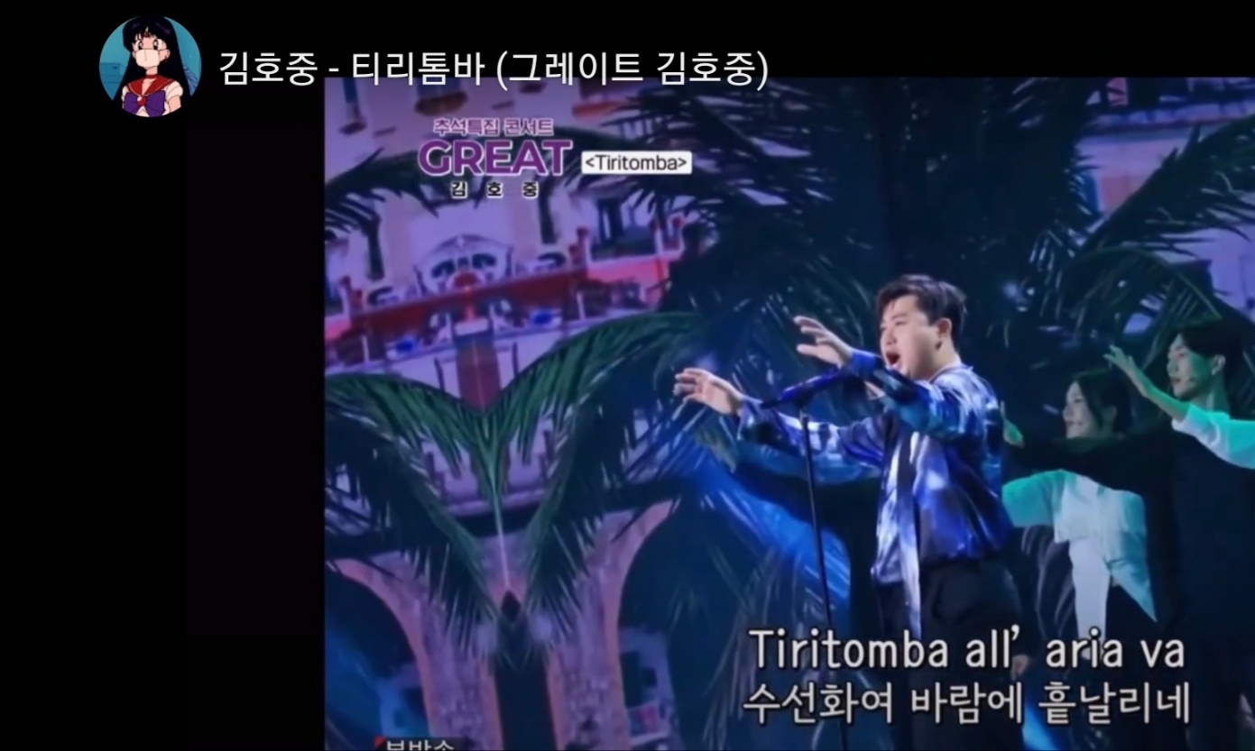 그러므로 아쉬움도 말해야겠다. 어젯밤 프로그램은 ‘GREAT 김호중’이라는 간판으로 방송되었다. 콘서트의 관객들은(열혈 팬) ‘트바로티’를 내걸고 있더라. 트바로티만이 선사할 수 있는 명곡 무대들이라는 예고도 뉴스에 담겨 있더라. 김호중의 앨범 수록곡은 시대를 대표하는 명곡들로 구성되어 있다고 예고되어 있더라.