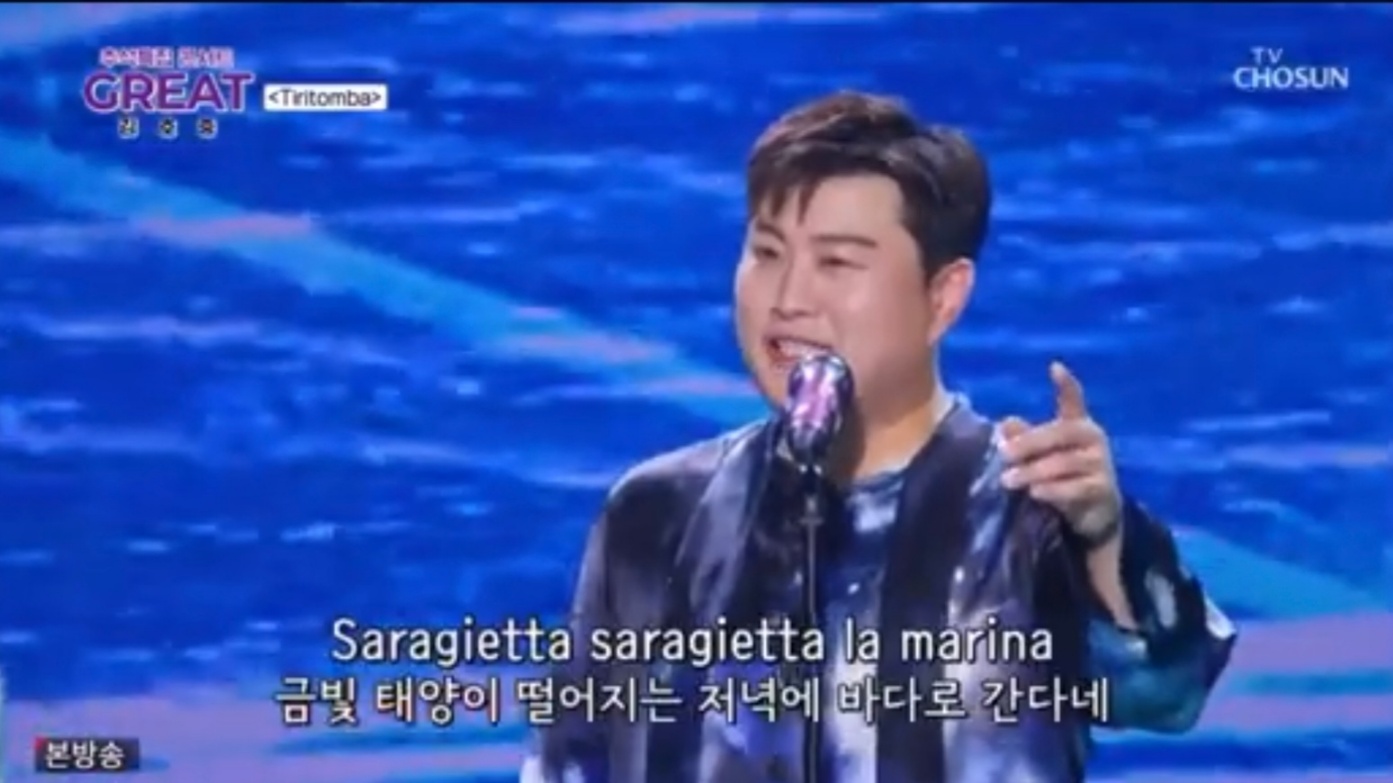 몇 곡 되지 않았다. 많이 아쉬웠다. 방송 중 나는 작업 중이던 컴퓨터 화면과 텔레비전 화면을 여러 번 왔다 갔다 해야 했다. 트로트를 부를 때는 내 개인 작업으로 돌아가고 클래식을 부를 때는 텔레비전 화면 앞으로! 번거로웠다. 오직 클래식 곡으로만 채워진 김호중 쇼를 시청하고 싶다. 꼭! 어젯밤 무대는 ‘Tiritomba’(티리돔바), ‘Adoro’(아도로) 등 클래식이 대여섯 곡에 불과한 듯.