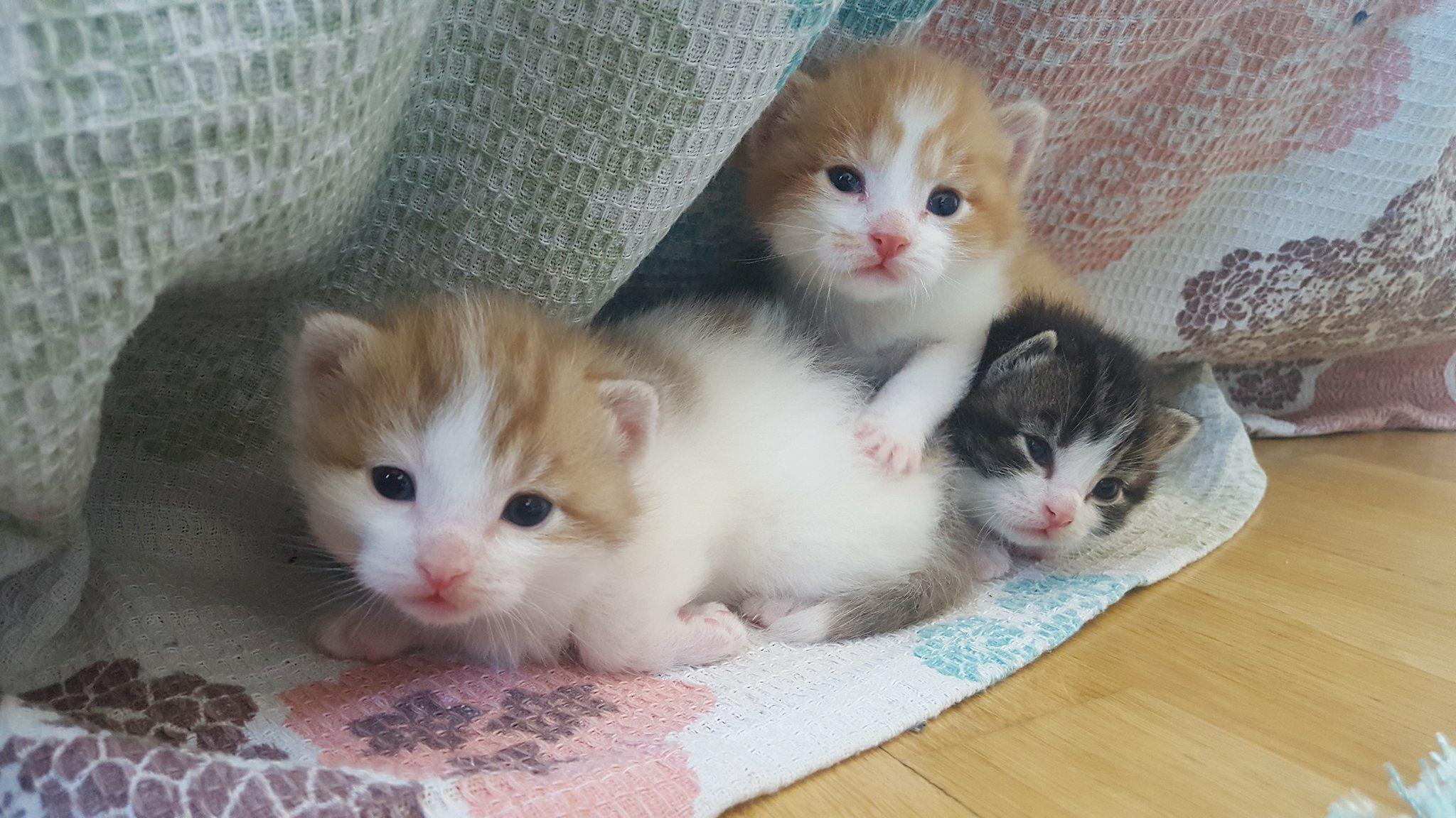 Here they are just three days old. The kitten which is black and white is the only girl so she's going to be a tough girl who's grown up with only boys 👊